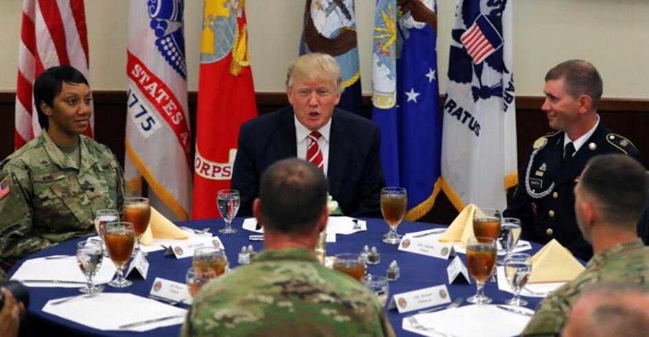 美國總統(tǒng)特朗普訪問位于佛羅里達州坦帕市麥克迪爾空軍基地的美國中央司令部總部