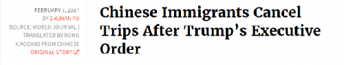 美國華人媒體報道稱,中國移民因為擔憂特朗普的移民政策,取消了旅行安排。