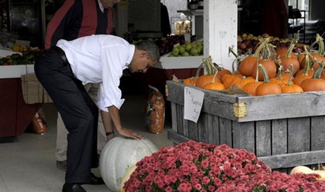 奧巴馬精心挑選要買的南瓜,他將要買一車的南瓜屯在家中。