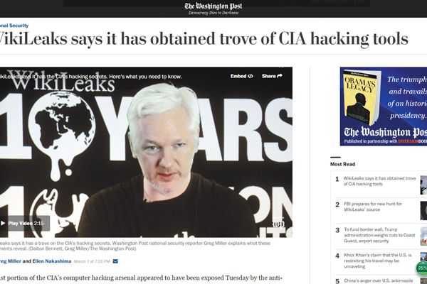 《華盛頓郵報(bào)》7日?qǐng)?bào)道:“維基解密稱已掌握中情局黑客攻擊的工具箱。”