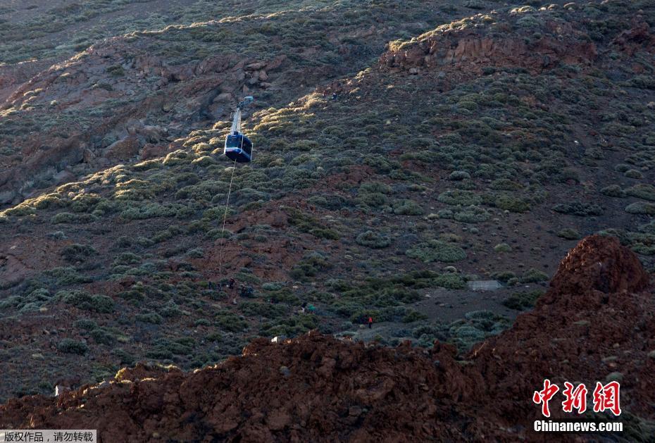 當地時間2017年3月15日,西班牙特納利夫島,泰德國家公園里通往泰德峰的兩輛纜車出現事故,60名游客被困空中。
