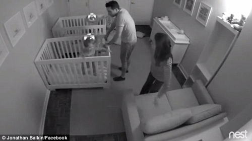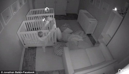 這兩個小家伙的所有行為都沒有逃過監(jiān)控的“法眼”。父母第二天早上查看監(jiān)控后被逗樂了,著實佩服這兩個小家伙的精力,于是就做成了一段延時視頻,上傳至網(wǎng)絡(luò)。視頻中,一個小家伙先靈活地翻出嬰兒床,開始搬墊子。隨后另一個小家伙也躺不住了,開始活動。他們把好幾個墊子堆在地上,“大干了一場”,似乎該歇歇了,于是就坐在沙發(fā)上,開始“夜聊”。不過,聊了沒多久,他們又開始“工作”了。兩人把房間里所有的墊子都搬了過來堆好,然后就開始做即興體操表演。