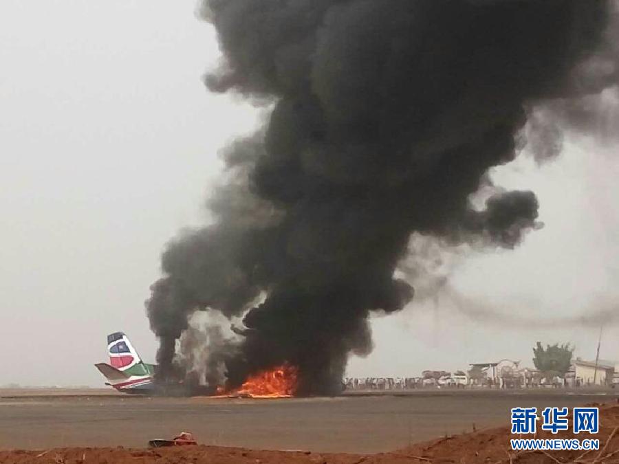 3月20日,在南蘇丹瓦烏機場,墜毀的客機冒出濃煙。一架小型客機20日下午在南蘇丹瓦烏機場著陸時墜毀,燃起大火并伴有爆炸,目前傷亡情況不明。 新華社發(fā)(劉俊豪 攝)