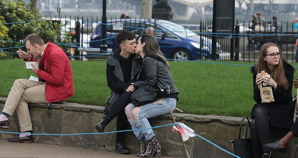 視頻中,這對女同夫婦在路邊親吻時,旁邊的一對情侶注意到了她們,其中的男子立刻叫自己的女友回頭看這對特殊的戀人。在其中一段錄像中能看到,這對女同夫婦在倫敦的一個地鐵站臺上擁吻時,一名西裝革履的男子緊緊盯著她們。而在另一段錄像中則看到,兩位老婦人面對擁吻的夫婦倆一臉嫌棄地皺起了眉頭。