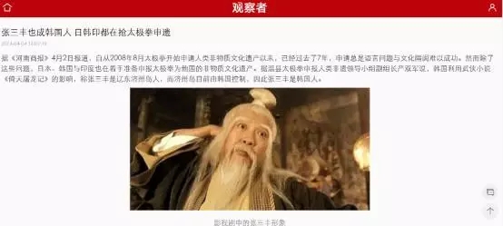 23日“中韓大戰”前,另一則有關中韓的“戰爭”也上了微博熱搜——韓媒稱張三豐是濟州島人。