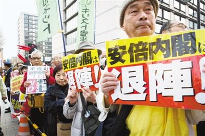 日本民眾日前在位于東京的國會大樓外手舉標牌集會示威,譴責安倍政府政策,并要求安倍辭職。