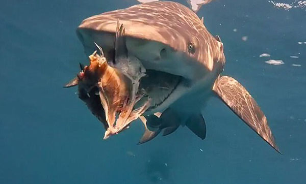 據悉,檸檬鯊一般成群出現,身長可達10英尺(約3米)。絲鯊的聽力非常好,身長可達12英尺(約4米),重達800英鎊(約363公斤)。