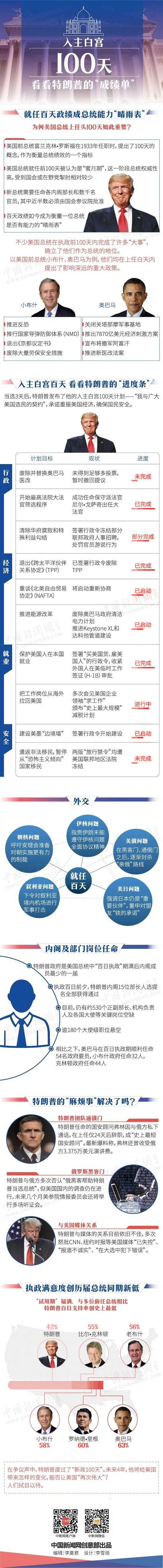 在剛剛過去的一周,飽受質疑的特朗普密集推進一系列爭議法案,欲為“百日成績單”增色。中新網為您一圖解讀特朗普就職百天的“成績單”。