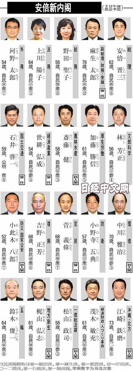以下為安倍新內閣詳細名單: