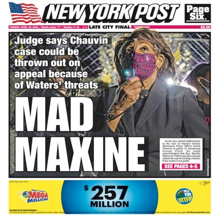 在美國,政客不干預司法程序,不對尚處于庭審中的案件表達立場是常識。對于沃爾特斯的言行,《紐約郵報》不禁用封面標題發(fā)出感嘆:“瑪克辛這是瘋了”(MAD MAXINE)。