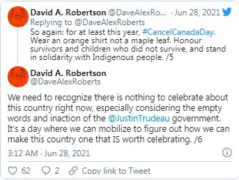 尤其諷刺的是,7月1日是加拿大的國慶日,但近期接二連三發現的無標記墳墓讓加拿大原住民組織和社區幾乎一致拒絕慶祝這個節日。加拿大原住民小說家大衛·羅伯遜在社交媒體上發文批評加拿大政府:“考慮到特魯多政府的空頭承諾和不作為,當下我們沒什么好慶祝的。”