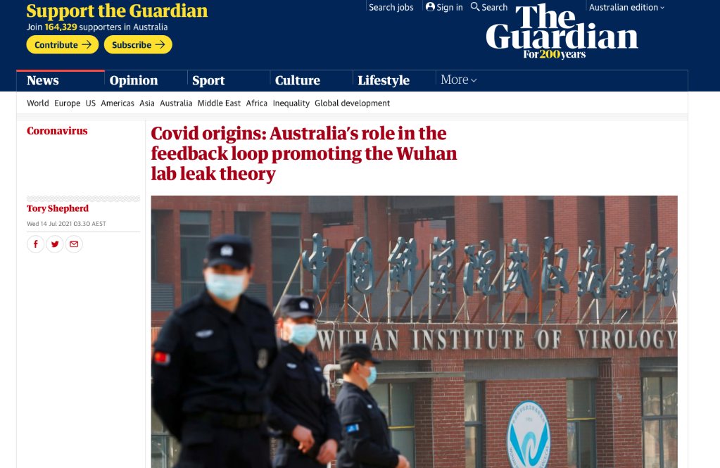 《衛報》澳大利亞版刊文《新冠溯源:澳大利亞在推動武漢實驗室泄漏論中扮演了什么角色》,揭露澳大利亞記者沙麗·馬克森與美國右翼勢力聯手炒作新冠病毒“實驗室泄漏論”的相關內幕。(網頁截屏)