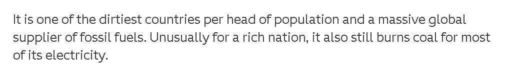 比如,澳大利亞一邊說會自己正在致力于在2050年時實現“凈零排放”,一邊卻又繼續允許煤礦的運作,并通過燃煤來發電。