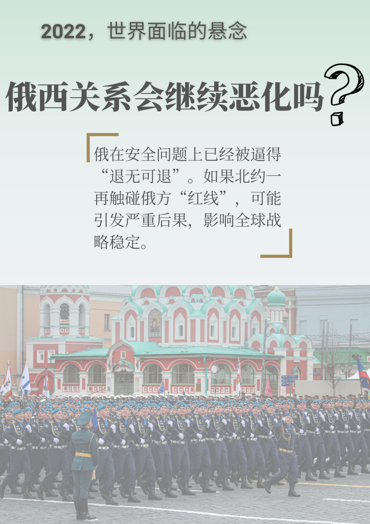 新的一年,懸念仍多:新冠疫情會走向終結嗎?全球經濟能回歸常態嗎?俄西關系會繼續惡化嗎?“德法發動機”能繼續推動歐盟前行嗎?面臨中期選舉、各種問題纏身的美國又會給世界帶來多少新的風險?