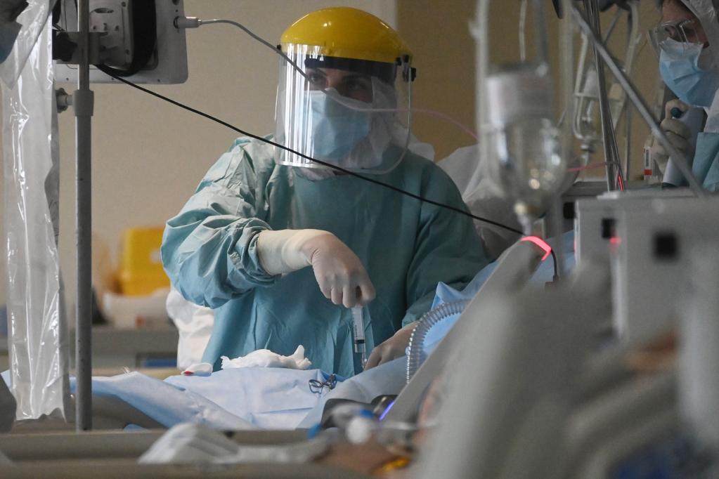 1月25日,醫(yī)務(wù)人員在意大利博洛尼亞一家醫(yī)院的新冠重癥監(jiān)護室工作。新華社發(fā)(賈尼·斯基基 攝)