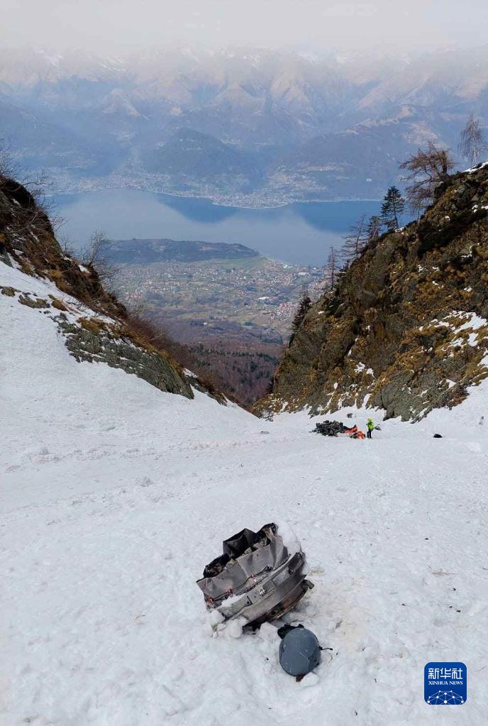 這是3月16日在意大利北部倫巴第大區萊科省拍攝的墜機事故現場。新華社發(意大利高山救援隊供圖)