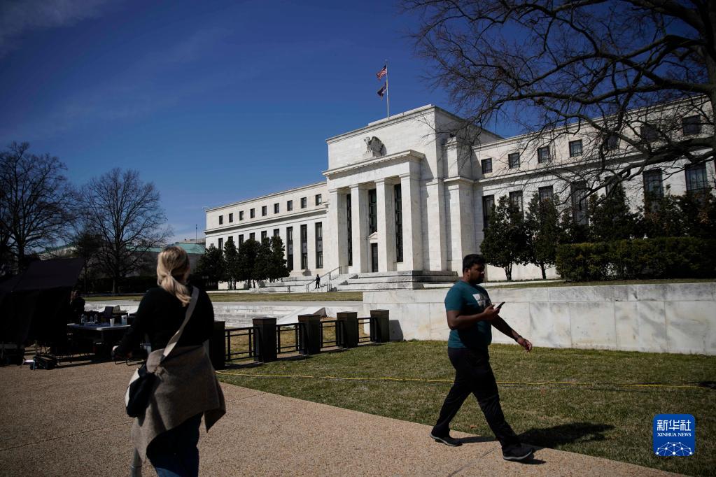 3月16日,在美國首都華盛頓,人們從美聯(lián)儲大樓前走過。新華社發(fā)(沈霆 攝)