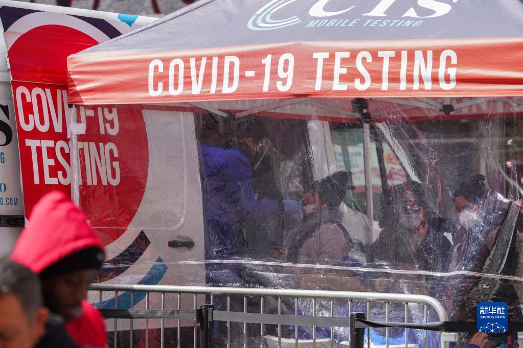 3月29日,醫(yī)護(hù)人員在美國(guó)紐約時(shí)報(bào)廣場(chǎng)一個(gè)新冠病毒檢測(cè)點(diǎn)取樣。新華社記者 王迎 攝