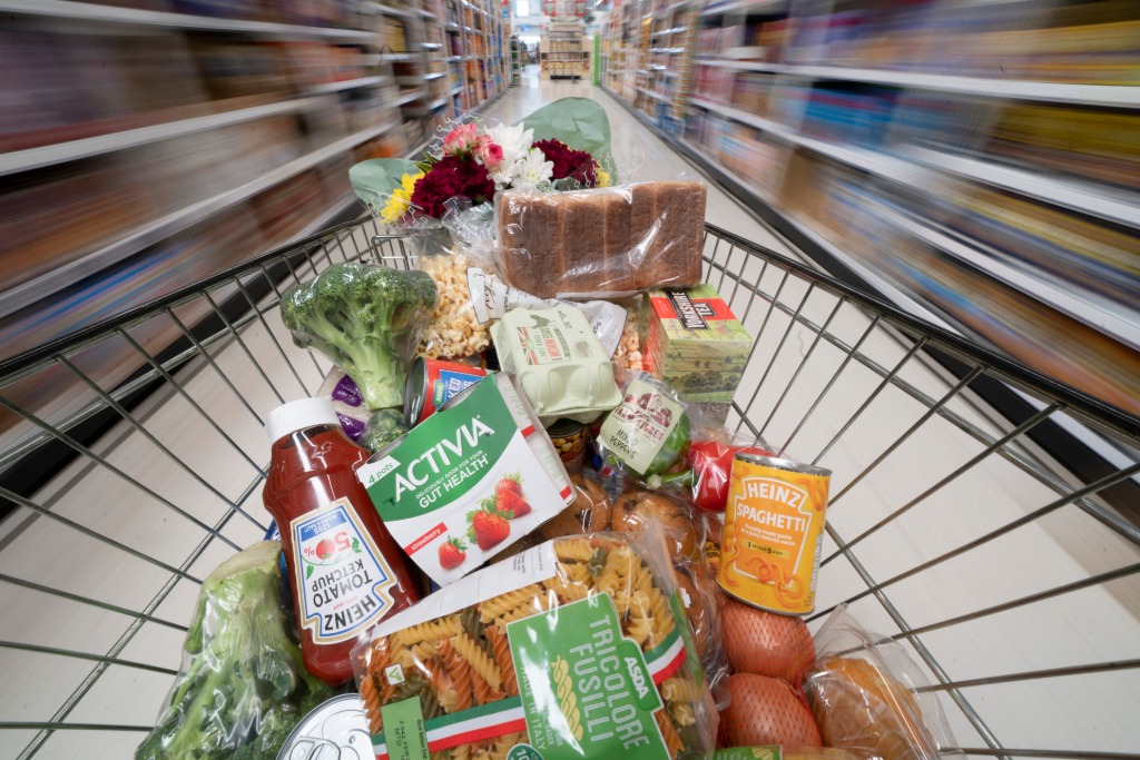 這是4月13日在英國曼徹斯特一家超市內拍攝的購物車。新華社發(喬恩·休珀攝)