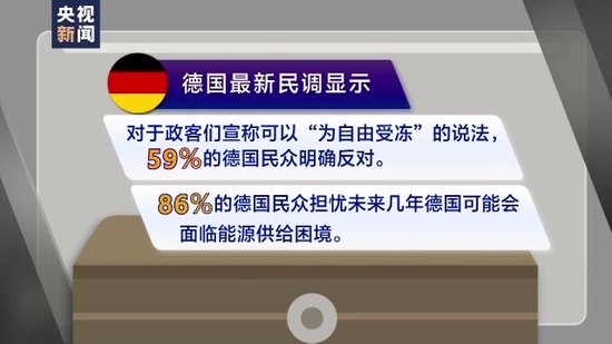 德國最新民調顯示,對于政客們宣稱民眾冬天要降低取暖器溫度,所謂“為自由受凍”的說法,59%的德國民眾明確反對。此外,86%的德國民眾擔憂未來幾年德國可能會面臨能源供給困境。