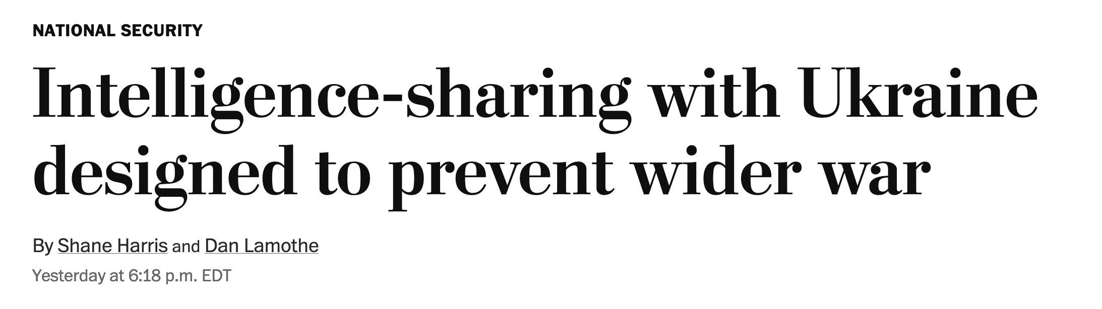 《華盛頓郵報》報道稱,為避免引發美俄之間的直接沖突,拜登政府制定了有關美烏情報共享的指導方針,其中兩類情報被禁止提供:一是涉及俄羅斯領導人的詳細信息,二是有關烏克蘭境外的俄羅斯目標的信息。