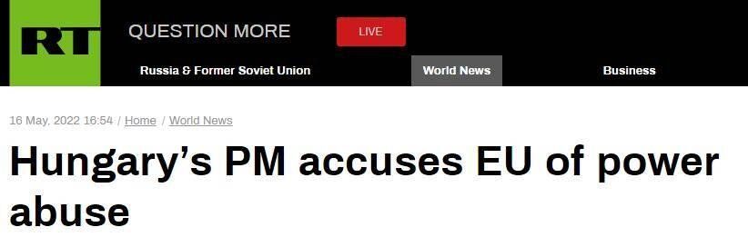 此外,RT還稱,歐爾班在評論歐盟準備對俄羅斯實施的第六輪制裁措施時向國會保證,只要不威脅匈牙利的能源安全,匈牙利就不會妨礙對莫斯科實施新的限制。歐爾班還認為,布達佩斯應該在歐盟內(nèi)部保持獨立的政策,他認為北約成員國也該如此。