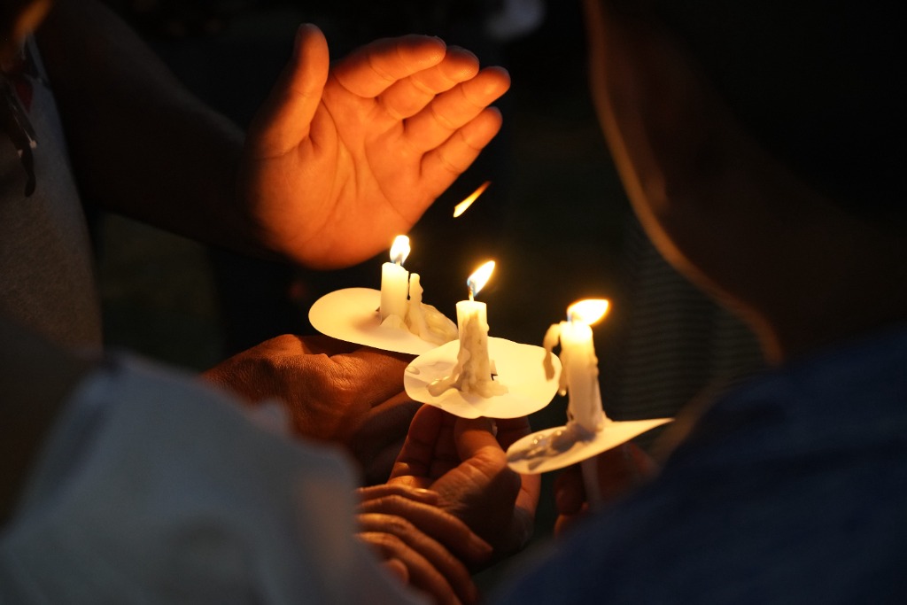 5月29日,在美國得克薩斯州南部尤瓦爾迪市的城市廣場,市民為槍擊事件遇害者守夜。美國得克薩斯州南部尤瓦爾迪市5月24日發生惡性校園槍擊事件,造成至少19名兒童和2名教師死亡。這是美國近十年來遇害人數最多的一起校園槍擊事件。新華社記者吳曉凌攝