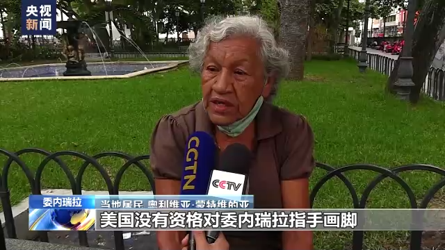 委內瑞拉當地居民 奧利維亞·蒙特維的亞:美國沒有資格對委內瑞拉指手畫腳,我們從很多年前就是自由民主的了。美國一直以來只是想掠奪委內瑞拉的財富,我們不會繼續給他們了,一切到此為止。美國不是任何一個國家的警察。