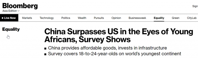 彭博社:調查顯示,中國在非洲年輕人眼中已超越美國