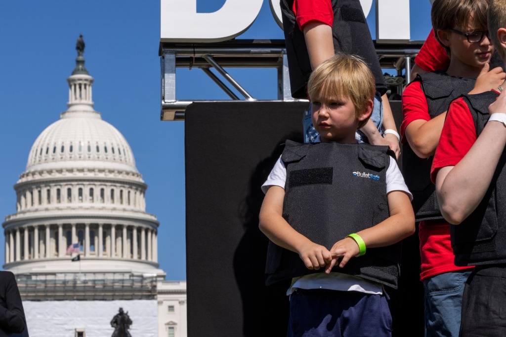 6月6日,學生們身穿防彈衣在美國華盛頓的國會大廈前參加名為“不要回避”的抗議活動,呼吁立法機構正視美國槍擊案頻發(fā)的社會問題,要求加強槍支管控立法。新華社發(fā)(亞倫攝)