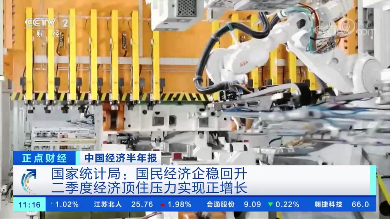 央視網消息:國家統計局今天上午公布的上半年國民經濟運行數據顯示,國民經濟企穩回升,特別是二季度經濟頂住壓力實現正增長,穩住了經濟大盤。