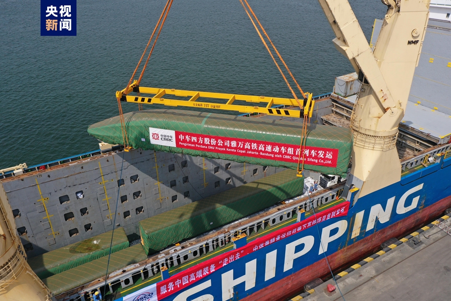 雅萬高鐵項目的列車,包括11組高速動車組和1組綜合檢測列車,均已在中車四方完成生產制造。此次在青島港裝船啟運的是雅萬高鐵首批發運車輛,預計將于8月底抵達印尼雅加達港,后續通過公路運輸運往萬隆德卡魯爾動車段。剩余車輛計劃在2023年初之前分批發運。