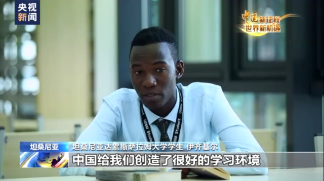 坦桑尼亞達累斯薩拉姆大學學生 伊齊基爾:中國給我們創造了很好的學習環境,教育才能讓我們的生活有根本性的變化,教育是解鎖人生的一把鑰匙,中國在幫助我們獲得這把鑰匙。