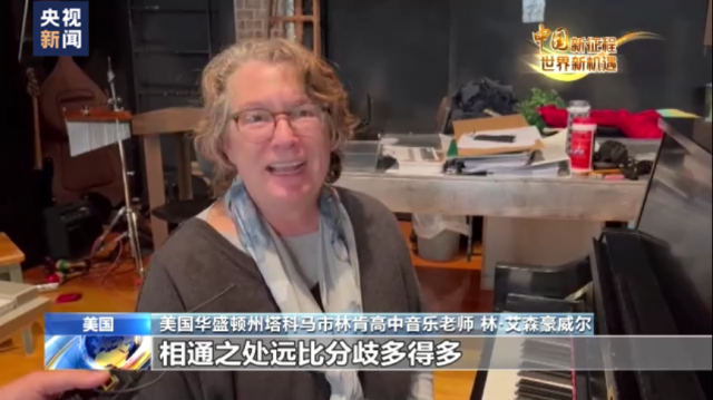 美國華盛頓州塔科馬市林肯高中音樂老師 林·艾森豪威爾:我曾經三次帶著林肯高中的孩子們到中國訪問,有一點深深感染我,通過相互的交流能夠讓我們發現,不同國家的人民,不同文明之間,相通之處遠比分歧多得多。習近平主席2015年到訪我們學校的重要性不言而喻,這讓年輕一代能夠更好地理解彼此,讓他們對未來的夢想充滿期待。