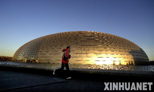 這是晨曦中的國家大劇院(1月12日攝)。 國家大劇院位于天安門廣場西側,與人民大會堂相鄰,占地面積11.89萬平方米,總建筑面積21.75萬平方米,外圍建筑造型為半橢球形鋼結構殼體,東西長軸212.2米,南北短軸143.64米,建筑高度46.28米,地下最深32.5米;外圍環繞人工湖,湖面面積3.55萬平方米,總綠化面積為3.9萬平方米。 新華社記者 才揚 攝