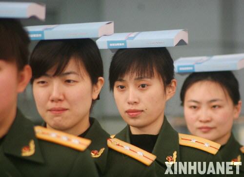 1月21日,沈陽邊防檢查站的出入境女檢查員在進行站姿訓練。當日,沈陽邊防檢查站對出入境女檢查員進行禮儀培訓,通過對站姿、行走、步速、轉身、微笑等禮儀訓練,為更好地服務北京奧運會期間出入境旅客做準備。 新華社發(蔡冰 攝)