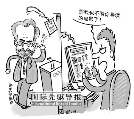 漫畫:抵制斯皮爾伯格顯得太小氣。(來源:《國際先驅(qū)導(dǎo)報》邱炯)