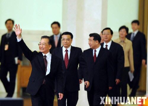 3月18日,國務院總理溫家寶和副總理李克強、回良玉、張德江、王岐山在北京人民大會堂與中外記者見面,并回答記者提問。 新華社記者李學仁攝