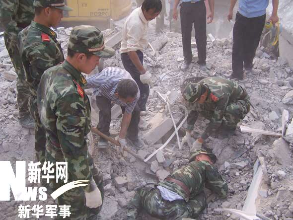 武警官兵成功搜救坍塌小學11名師生(陳萬金 拍攝)