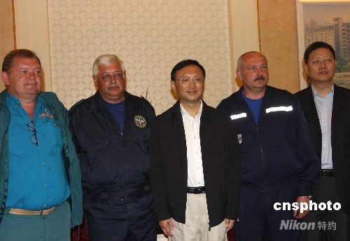 5月30日,中國外交部部長楊潔篪前往成都市錦江賓館會見俄羅斯醫療隊,高度贊揚了他們對災區民眾的關心和國際人道主義精神。 中新社發 黃榮 攝