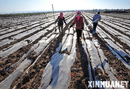 寧夏固原市原州區開城鎮深溝村村民在田間進行覆膜保墑作業(11月7日攝)。 新華社記者 王鵬 攝