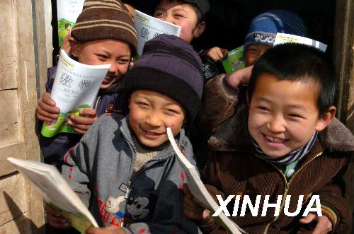 內蒙古清水河縣宏河鎮小學的幾名學生在展示新課本(2006年2月28日攝)。2006年內蒙古自治區率先免除農村牧區義務教育階段的學雜費。改革開放以來,尤其是近年來,內蒙古自治區依托資源、區位優勢,加快工業和農牧業經濟發展。自2002年來,連續6年經濟增速居全國第一,2007年內蒙古生產總值達到6018.8億元,經濟規模躍居全國第16位。在經濟快速發展的同時,自治區社會文化各項事業欣欣向榮,農牧民生活水平、醫療狀況明顯得到改善。 新華社記者 任軍川 攝