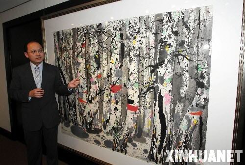 11月18日,香港書(shū)畫(huà)專(zhuān)家介紹一幅估價(jià)約400至500萬(wàn)港元的吳冠中作品《白樺林》。 當(dāng)日,一批將于12月2日在香港佳士得拍賣(mài)的部分中國(guó)古代及近現(xiàn)代書(shū)畫(huà)精品在香港展出。 新華社記者 張鳳國(guó) 攝