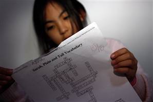 她本該讀四年級了,但因為語言障礙,只能現在低年級學習。安娜覺得中國的學校比美國學校要“辛苦五倍”。她有一包從美國帶來的試卷,上面全是用綠色墨水打出的高分。“在美國我可以很容易得‘A’,在這里,我基本得的都是‘B’和‘C’!卑材日f。