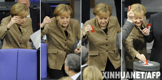 這是12月19日德國(guó)總理默克爾在聯(lián)邦議院參加投票的拼版照片。當(dāng)日,德國(guó)聯(lián)邦議院以多數(shù)票批準(zhǔn)德國(guó)聯(lián)邦國(guó)防軍參與歐盟在索馬里海域打擊海盜的“阿塔蘭塔”行動(dòng),德國(guó)海軍將首次出兵打擊海盜。 新華社/法新