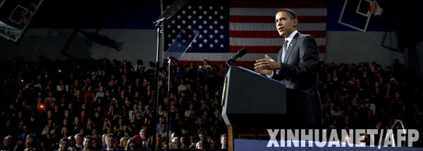 2月18日,在美國(guó)亞利桑那州的梅薩,美國(guó)總統(tǒng)奧巴馬就住房救援計(jì)劃發(fā)表講話。 新華社/法新