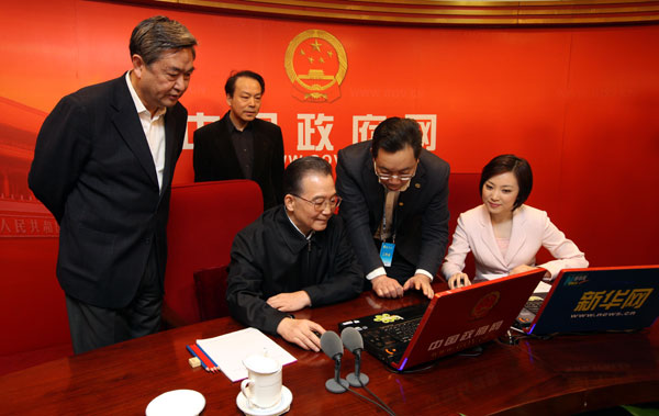 2月28日,中共中央政治局常委、國務(wù)院總理溫家寶進(jìn)入中國政府網(wǎng)訪談室,與網(wǎng)友在線交流并接受中國政府網(wǎng)、新華網(wǎng)聯(lián)合專訪。 新華社記者姚大偉 攝