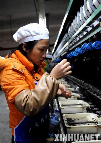 廣西東蘭縣花神絲綢有限公司的女工在車間繅絲(3月4日攝)。廣西近年來大力發展“東桑西移”工程,桑園面積從2000年的30萬畝增加到目前的202萬畝,年產繭量從2.95萬噸增加到20.52萬噸。蠶桑產業帶動200多萬廣西農村富余勞動力轉移就業,其中包括部分返鄉農民工。新華社記者 張愛林 攝