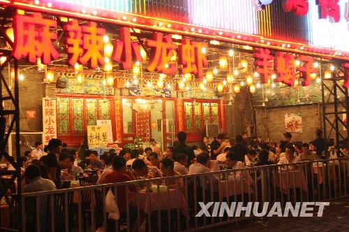 食客在北京東直門簋街一家餐館品嘗美味。 新華社發(陳曉根攝)