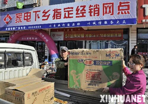 4月8日,錫林郭勒一家商場(chǎng)的售貨員幫助顧客搬運(yùn)購買的家電下鄉(xiāng)產(chǎn)品。內(nèi)蒙古農(nóng)牧區(qū)自2008年12月1日開展家電下鄉(xiāng)活動(dòng)以來,家電下鄉(xiāng)銷售網(wǎng)點(diǎn)已達(dá)到1126家,銷售家電下鄉(xiāng)產(chǎn)品超過2萬件。新華社記者李欣攝